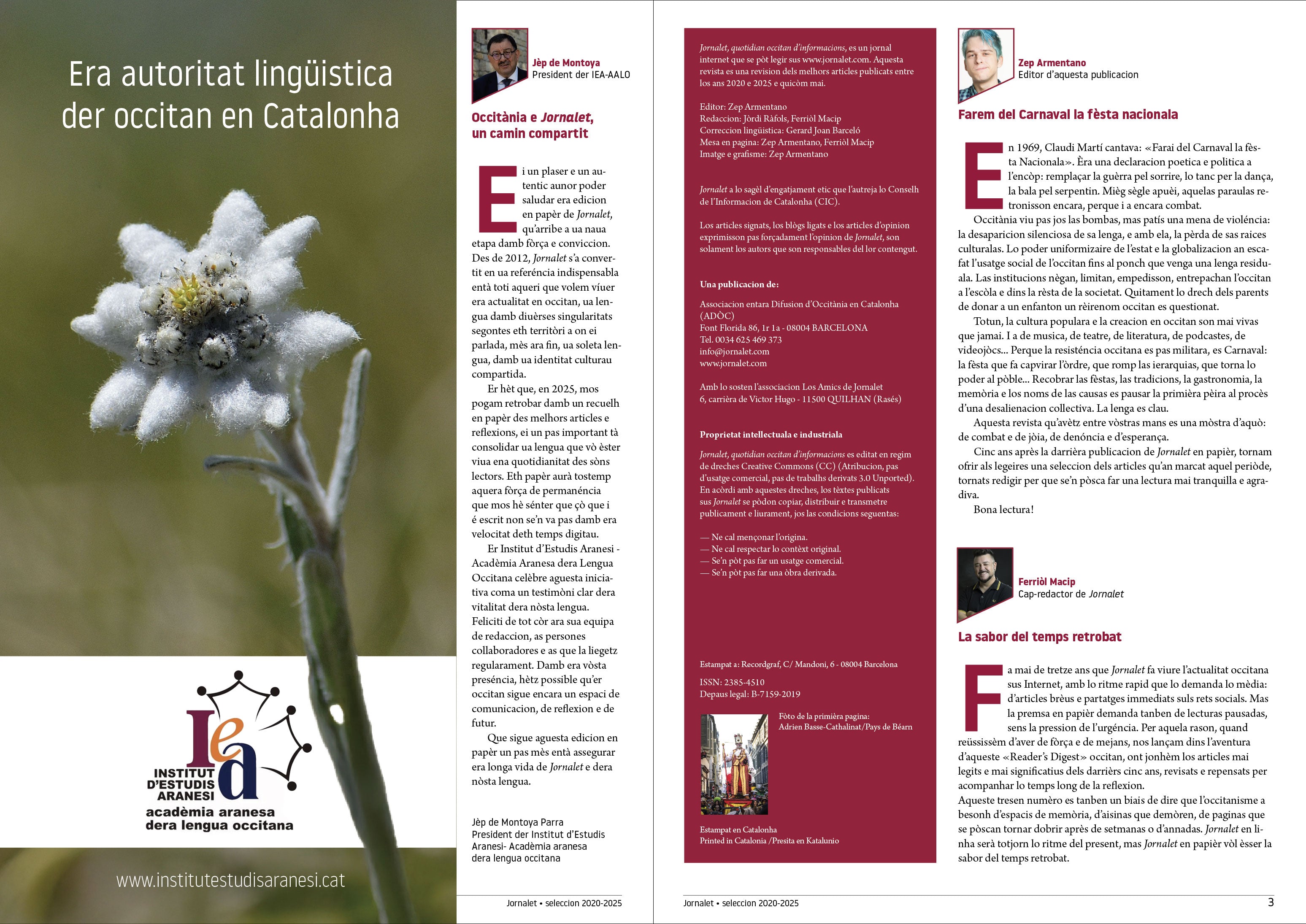 Après mai de tretze ans a far viure l’actualitat occitana sus Internet, Jornalet torna, un còp de mai, al papièr. Aquela edicion especiala, la tresena dempuèi la creacion del mèdia, se presenta coma un vertadièr «Reader’s Digest», ont se recampa los articles mai legits e mai significatius dels darrièrs cinc ans, revisats e reescriches per una lectura sul papièr que permeta lo temps long de la reflexion.